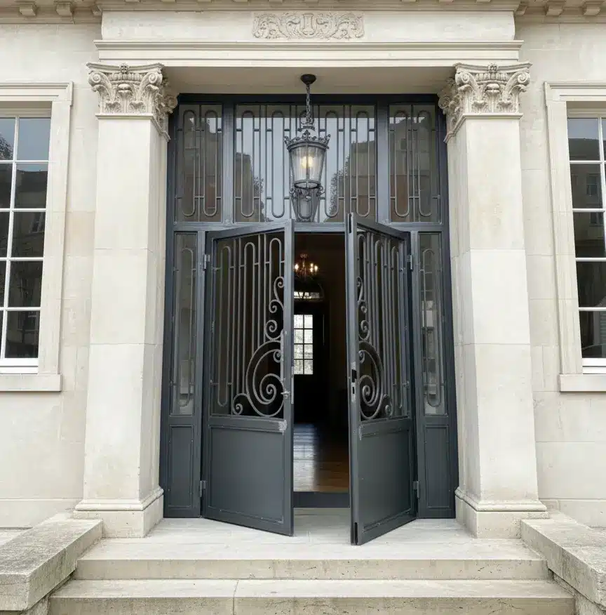Savfer Metal Sanat Atölyesi olarak, özel tasarım ferforje bina kapısı çözümlerimizle binalarınıza prestij, güvenlik ve zamansız bir şıklık kazandırıyoruz. İstanbul’da projelere özel ürettiğimiz ferforje merdiven korkuluk çözümlerimizi de inceleyebilirsiniz.